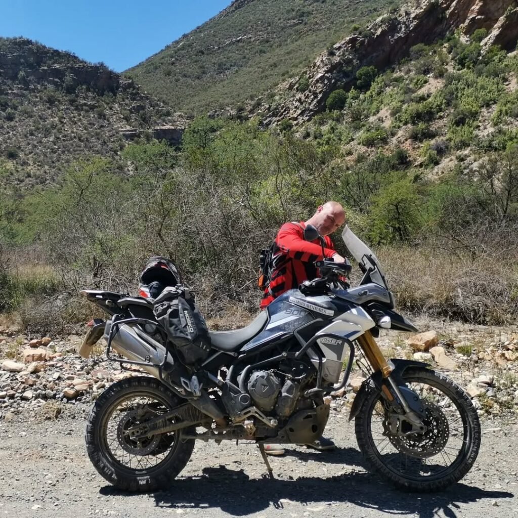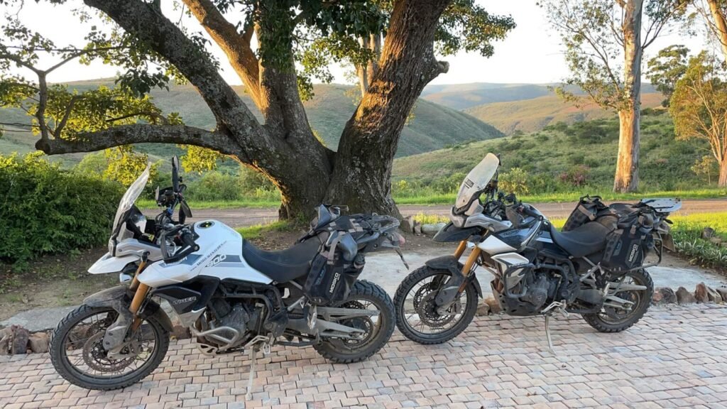 You’ll ride the powerful Triumph Tiger Rally Pro 900cc, fully equipped with GPS, on a route that blends scenic asphalt and off-road excitement. Experience South Africa’s Cape of Good Hope, the legendary Sani Pass, a private game safari, and high-altitude views across Maletsunyane Falls.