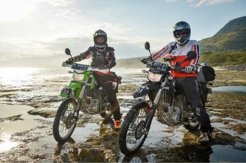 Arrive at Komodo International Airport (LBJ) and transfer to your hotel, check-in, and enjoy a welcome lunch. After a briefing and bike check, we’ll take a relaxed afternoon ride to get a feel for the Kawasaki KLX 250s. Sunset ride through the hills with coastal views. Welcome dinner and overnight at your hotel.