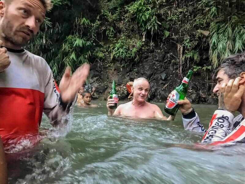 Descend from Wae Rebo basecamp and start riding east along the remote southern coast. Expect technical terrain, multiple river crossings, forest sections, and rural tracks. Finish the day at a secluded beach, where a local family hosts us for a seafood BBQ and overnight camping.