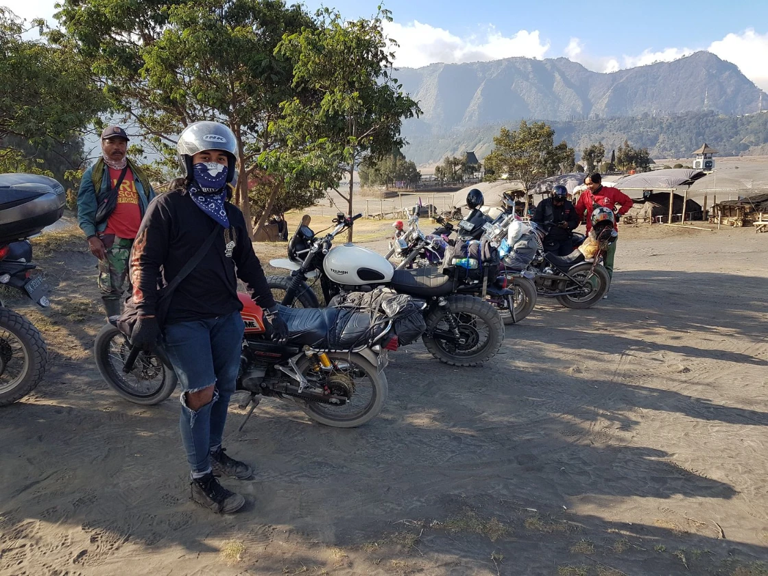 This guided tour combines coastal riding, high mountain passes, traditional Sasak culture and hidden viewpoints. Riders cross the Lombok Strait by ferry before exploring the island’s northern coastline, the slopes of Mount Rinjani, remote southeastern peninsulas and the rolling hills of the southern coast.