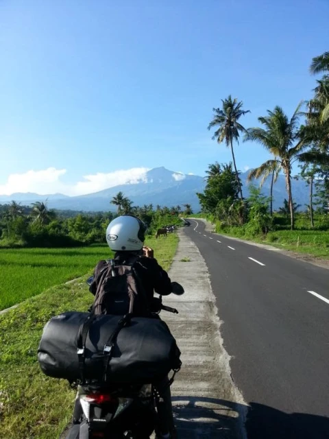 After arrival in Lombok the ride continues north along the coast past Mataram. Following a lunch stop in Senggigi, the road turns inland and gradually climbs toward the mountain village of Senaru on the slopes of Mount Rinjani. Depending on arrival time there may be an opportunity to visit the nearby Sidang Gile waterfall.