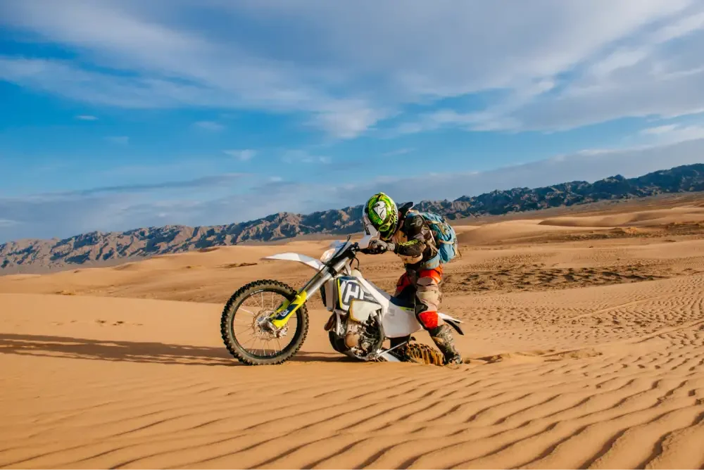 Ride deep into the heart of Mongolia’s legendary Gobi Desert, one of the most awe-inspiring landscapes on Earth. This 7-day off-road adventure takes you through vast sand dunes, dramatic canyons, ancient rock formations, and historic monasteries, all while immersing yourself in Mongolia’s rich nomadic culture. Ride Husqvarna FE 450 or 701 Enduro motorcycles across breathtaking terrains, from the White Stupa rock formations to the remote sands of Elsen Tasarkhai, and experience the beauty of the Hustai National Park, home to the wild Przewalski’s horses.