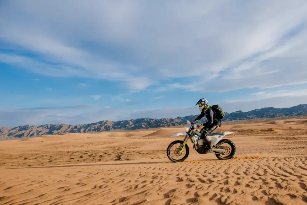 • Riders must be physically fit and comfortable handling off-road terrain, including sand dunes, rocky tracks, and long desert stretches.