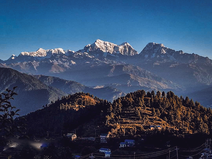 • The day ends in Charikot, a small town offering spectacular views of the Himalayas.